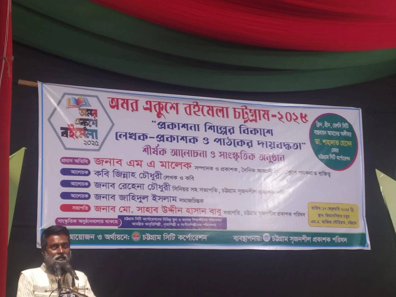 চট্টগ্রামের এম এ আজিজ স্টেডিয়ামের জিমনেসিয়াম মাঠে আয়োজিত অমর একুশে বইমেলায় প্রাণচাঞ্চল্য ফিরেছে। গত ১ ফেব্রুয়ারি, ২০২৫ তারিখে বইমেলার উদ্বোধন করেন গৃহায়ন, গণপূর্ত ও শিল্প মন্ত্রণালয়ের উপদেষ্টা আদিলুর রহমান খান।